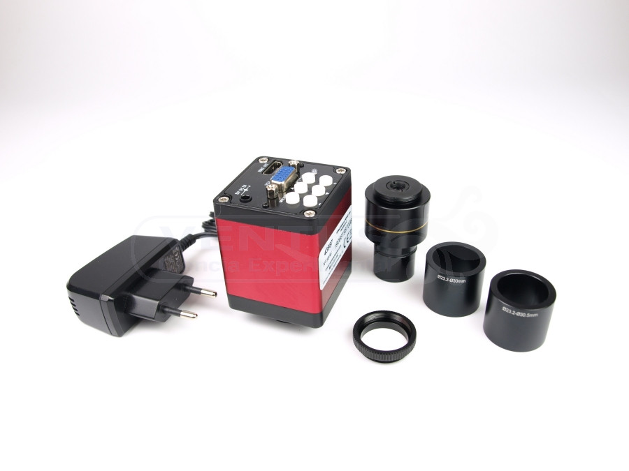 Adaptable tanto a monturas tipo C de dispositivos trinoculares como a tubos porta oculares de microscopio estándar de 23,2 mmØ (retirando el ocular e introduciendo la cámara). Mediante unos adaptadores incluidos permite también ser adaptada a portaoculares en estereomicroscopios.