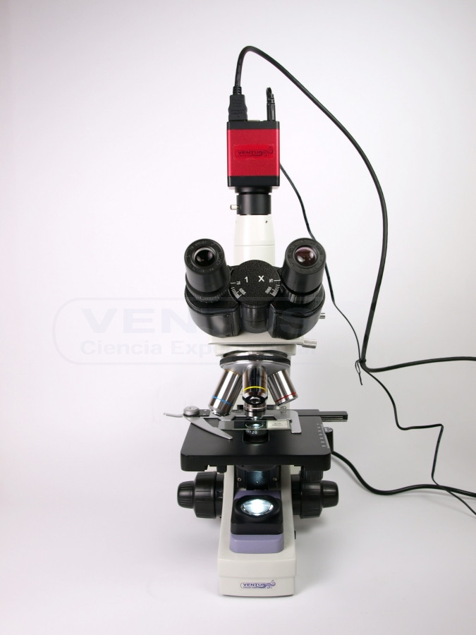 - Montura C para acoplar a adaptadores de tubos verticales de microscopios y lupas trinoculares.