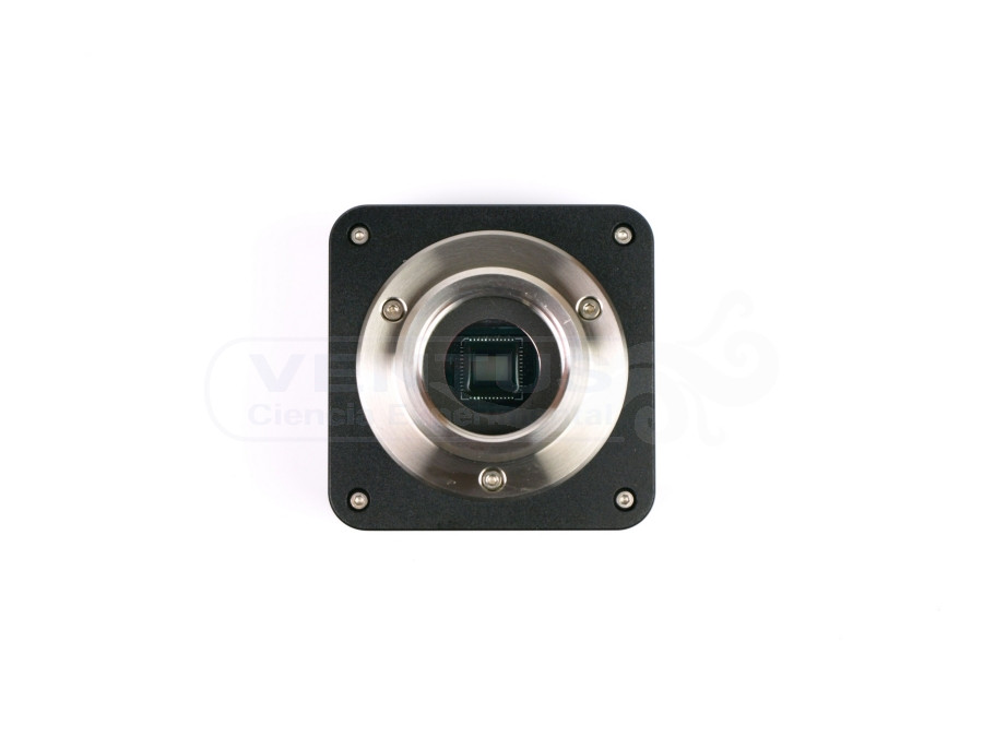- Montura C para acoplar a adaptadores de tubos verticales de microscopios y lupas trinoculares.