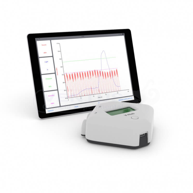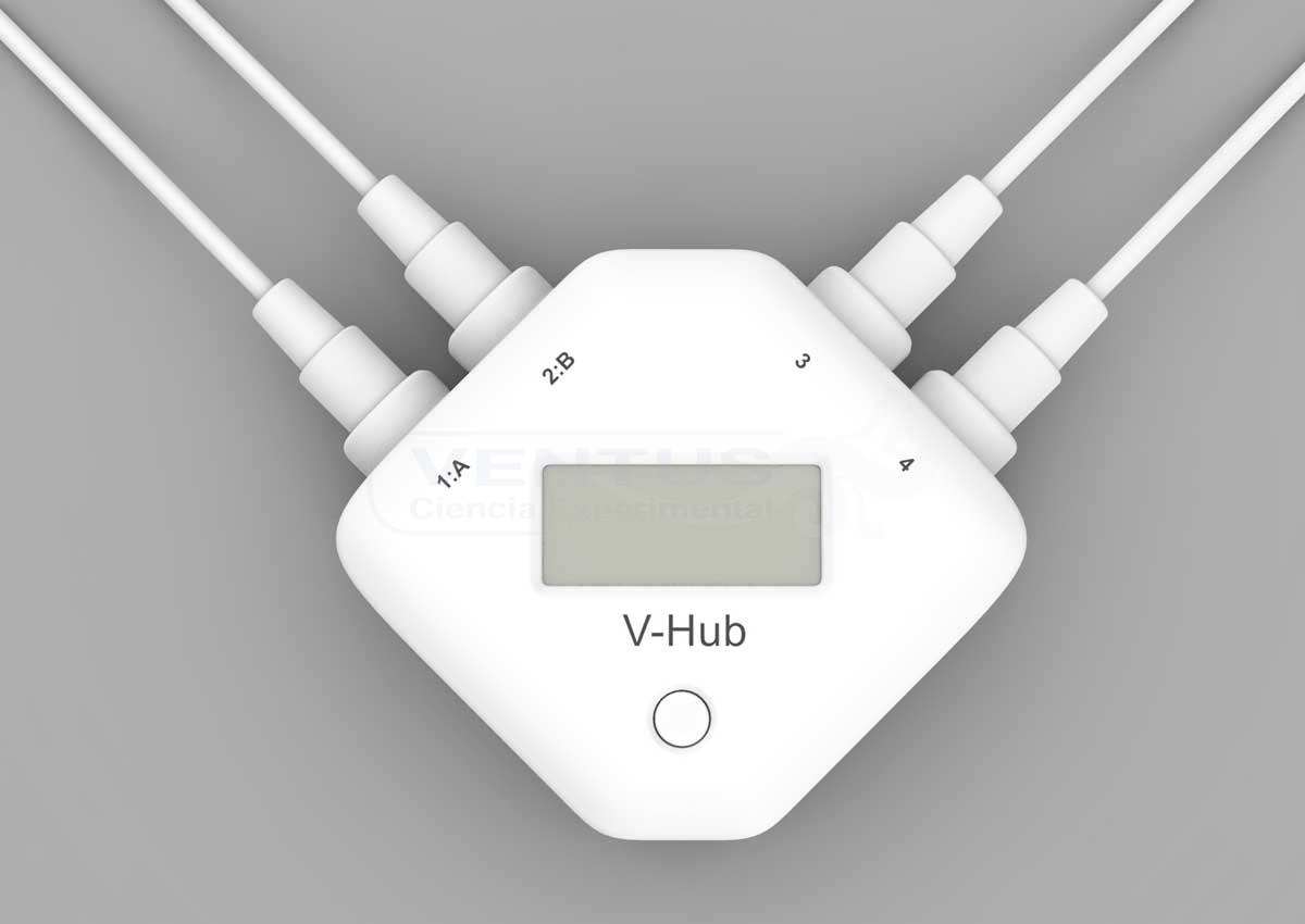 Se suministra: Consola V-Hub4, cable USB, 4 cables para conexión de sensores (2 de 150 cm y 2 de 15 cm), varilla de fijación.