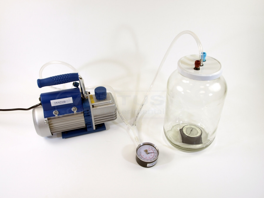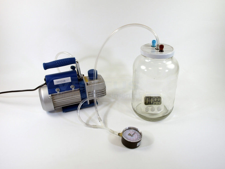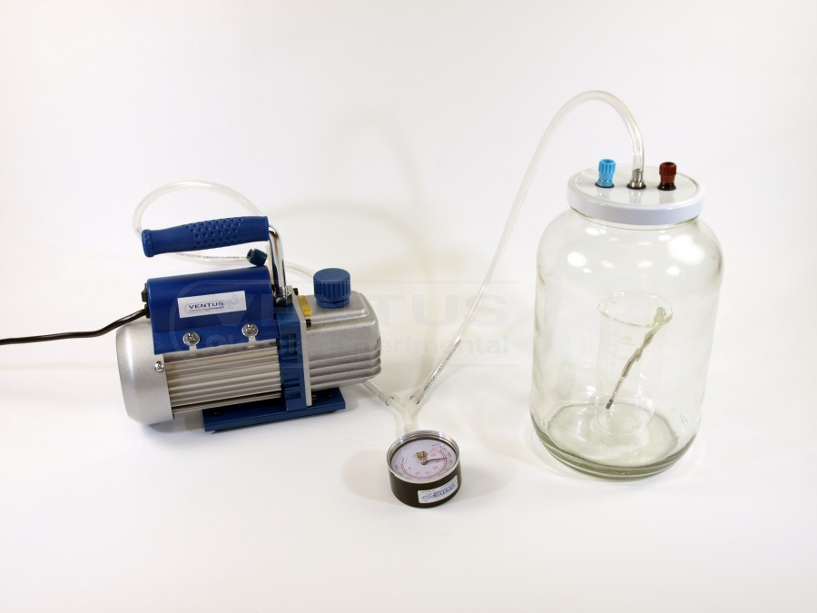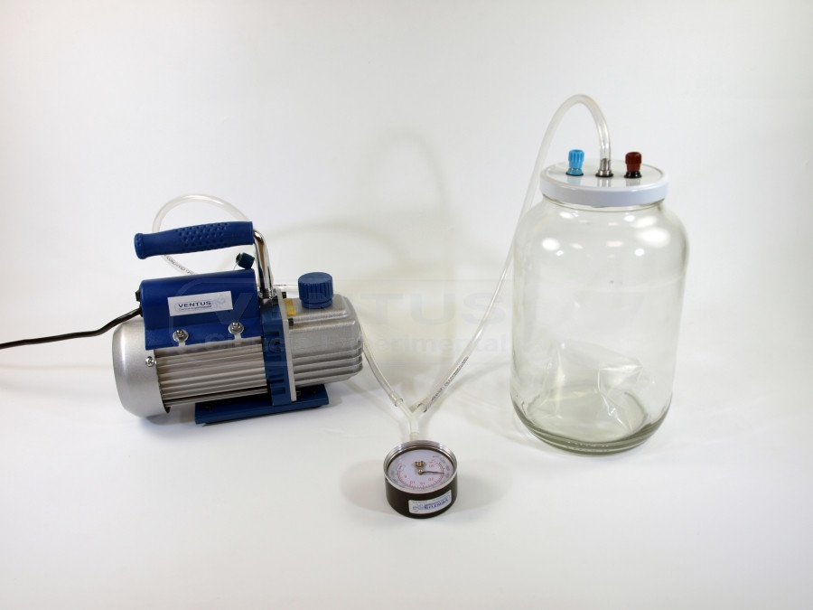 - Recipiente para vacío 4 l (Ø150x280 mm), con bornes eléctricos 4 mm y boquilla 7 mmØ.