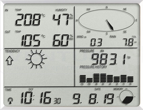 - Memoria cíclica para 4080 registros meteorológicos completos (intervalo de registro ajustable 5 a 240 min.)