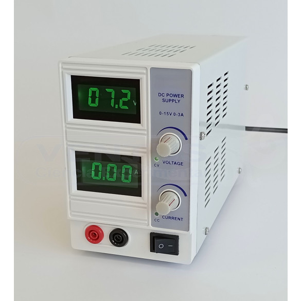 Regulable de forma continua 0 a 15 VCC. Intensidad regulable de 0 a 3 A. Indicadores de tensión e intensidad digitales LED. Operación a tensión o corriente constante con indicador luminoso automático. Resolución 0,1 V / 0,01 A. Protegida contra sobrecargas y cortocircuitos. Alimentación 230 VCA. Dim. 95x155x240 mm. Peso 2,2 kg.