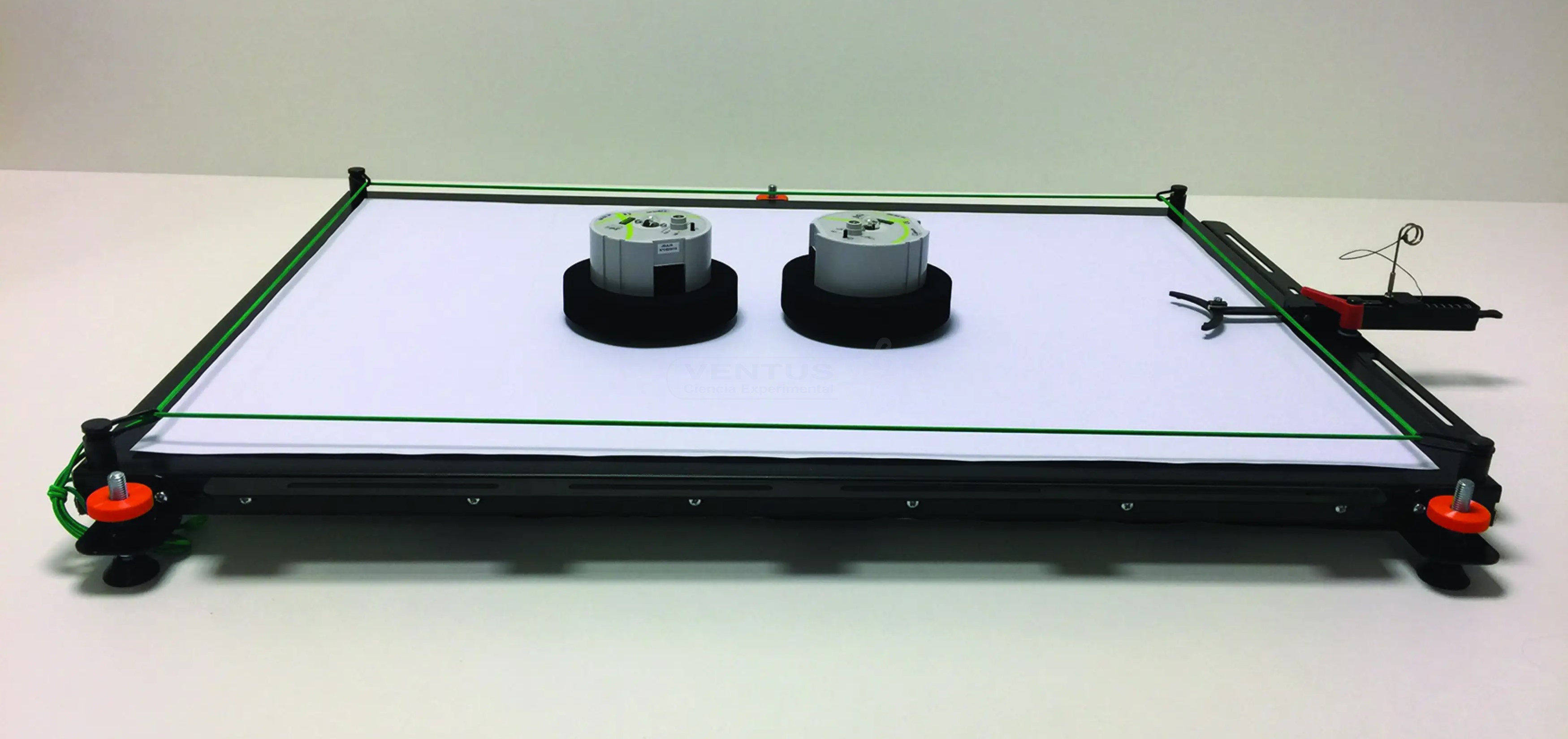 Por medio de un chorro de tinta, el movimiento del disco se traza sobre un papel de formato estándar DIN A1, que cubre la superficie de la placa. Para este propósito, los discos contienen un cartucho de tinta de impresora de venta común en tiendas. Los movimientos que registran dos discos se pueden distinguir por la elección del color sea este negro o rojo. Opcionalmente, también es posible realizar el registro por medio de una cámara de alta velocidad (no incluida en el suministro). Con este fin se han montado leds conmutables de dos colores en los discos.