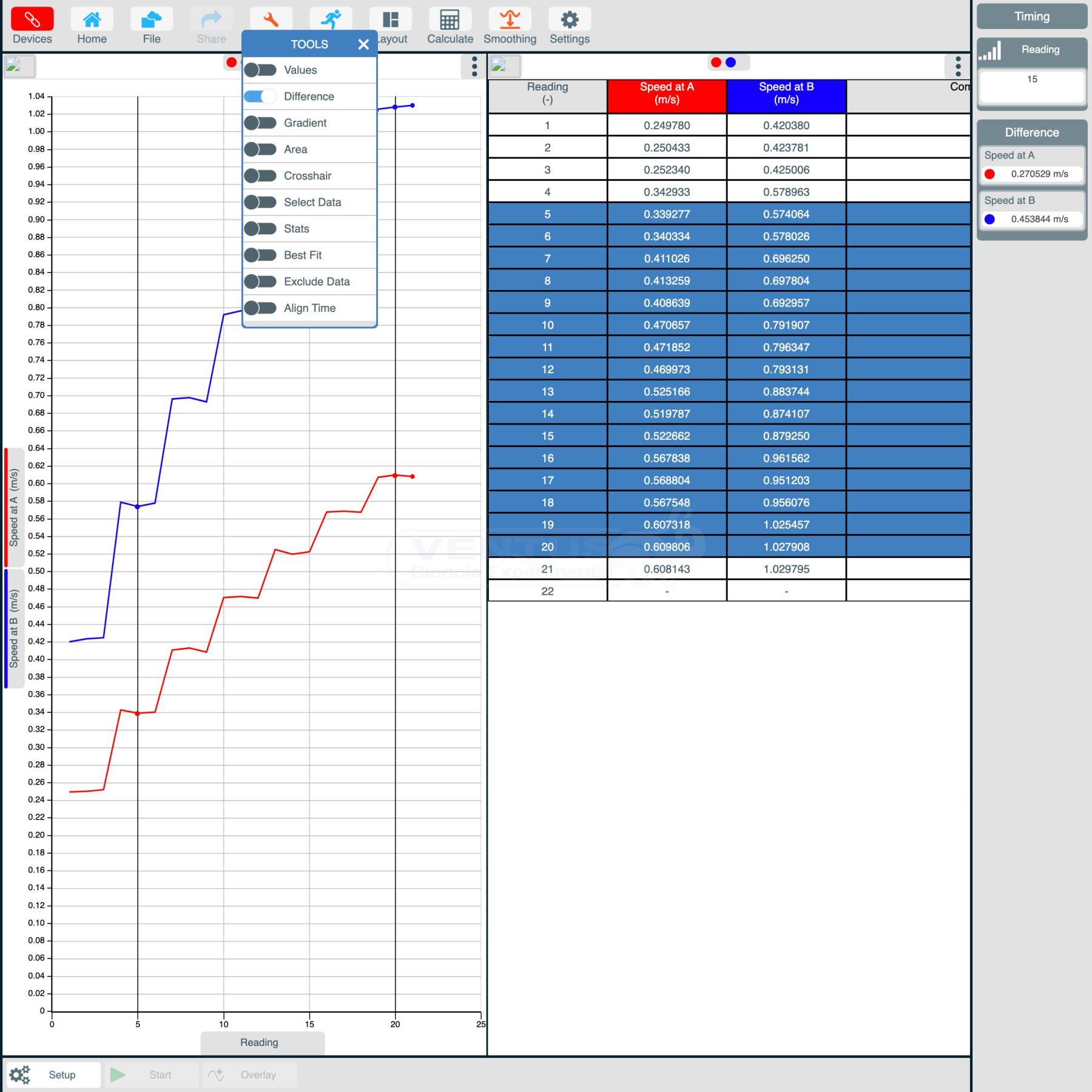 El Sensor de Barrera de Luz Inalámbrica de Data Harvest permite registrar dos eventos de temporización consecutivos con precisión de 1 µs. Puede emplearse de forma individual o junto con otras barreras para analizar el movimiento lineal. A partir de los tiempos medidos, es posible calcular: