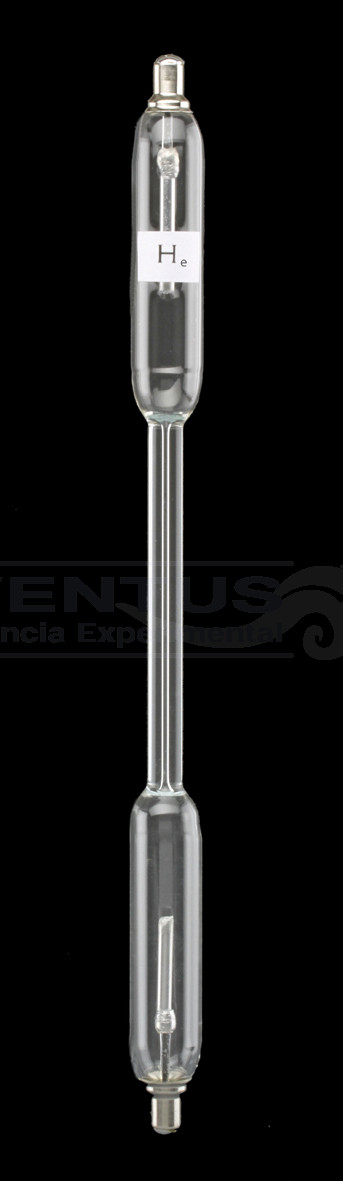 Tubo espectral con gas helio para la visualización de líneas espectrales.